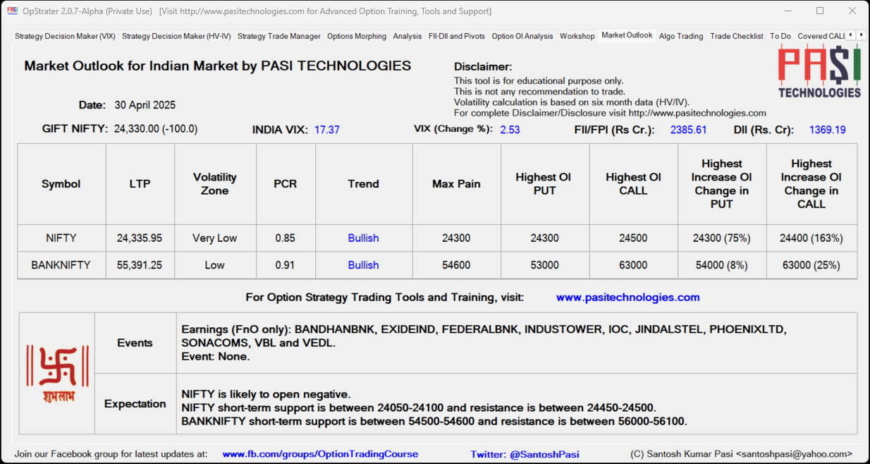 NIFTY short-term support is between 24050-24100 and resistance is between 24450-24500.